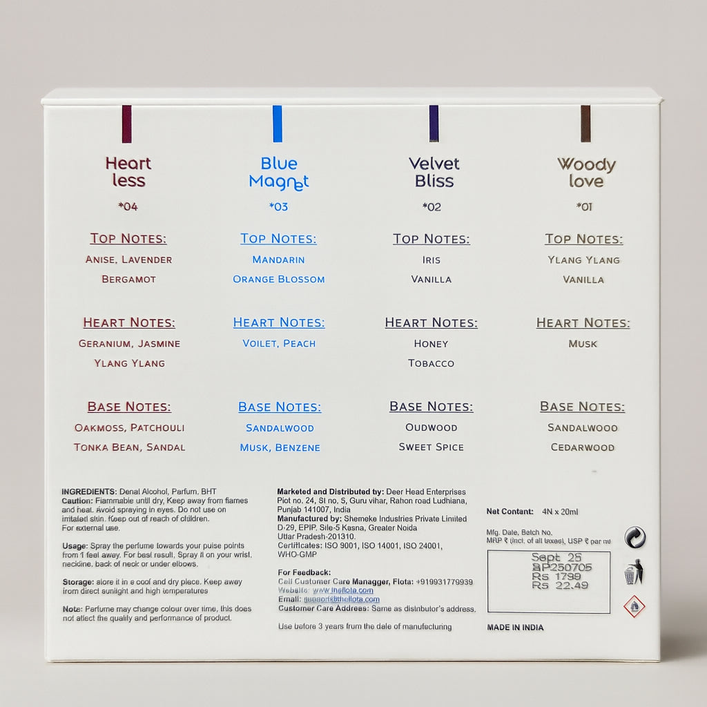 Versatility in a Box: Switch your scent as often as you switch your outfit. From the freshness of Blue Magnet to the deep warmth of Woody Love.
